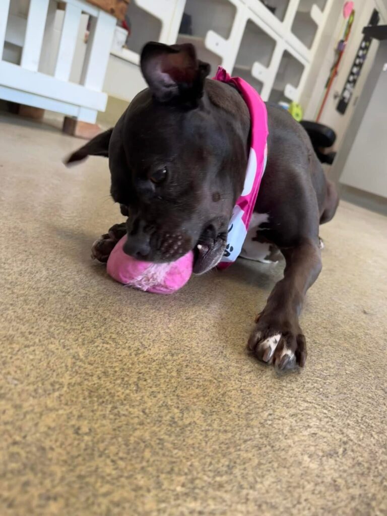 Luna has a few preferences in her ideal home. She’s not fond of small breed dogs, as she tends to view them more as toys. She’s also not compatible with cats. While she can get along with other dogs, proper introductions will be required. Due to her sensitivity to rough handling, she would do best in a home with older children.