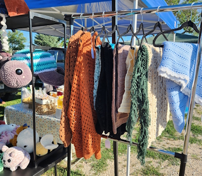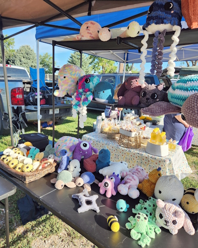Rebakah Lee’s crocheted items at the Blair, Nebraska Farmer’s Market