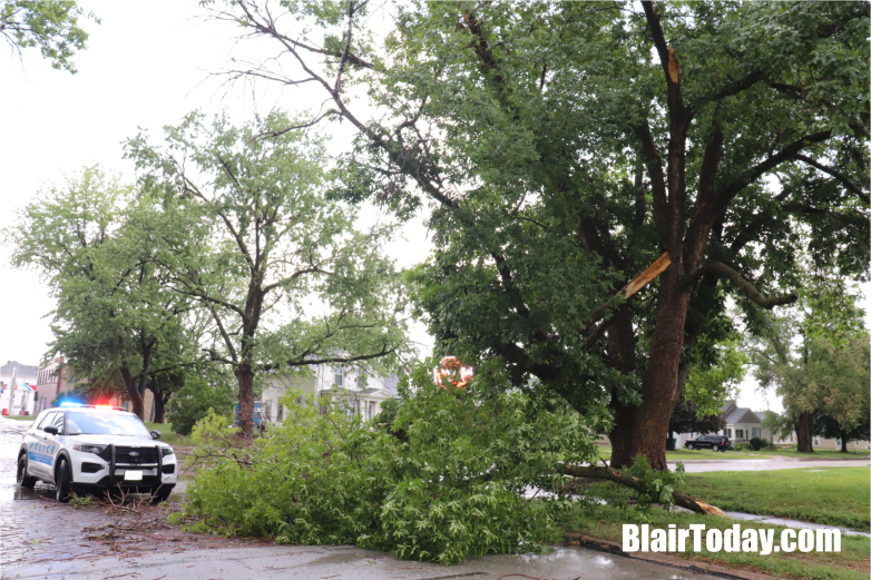 I asked an officer up the street who sat in his car holding back traffic from under a downed tree, “Do you know what today’s date is? He said, ‘June 4.'” I added, “Look up the 2014 storm in Blair…” As his eyes looked down at the phone in his hand, he typed, scrolled, then looked at me and said, “You gotta be kidding me.”