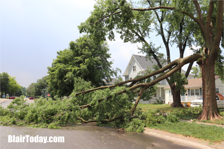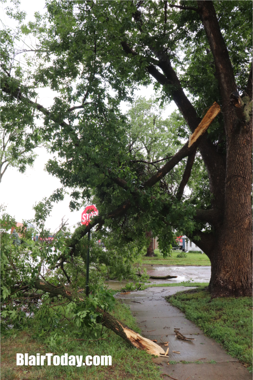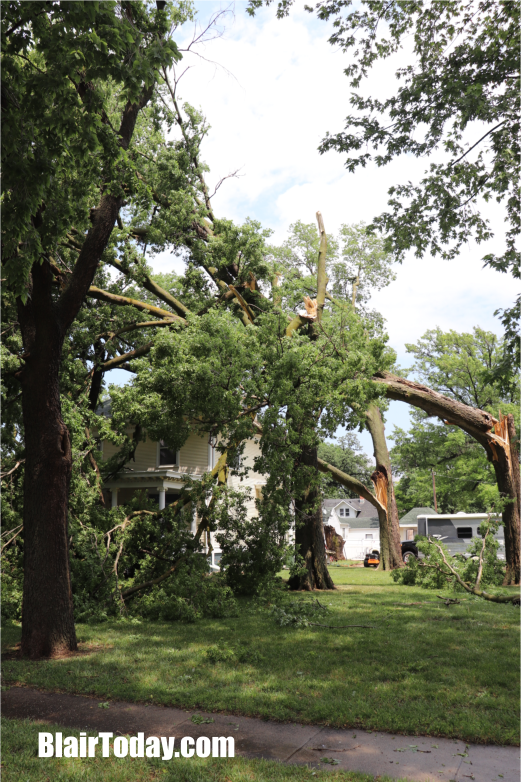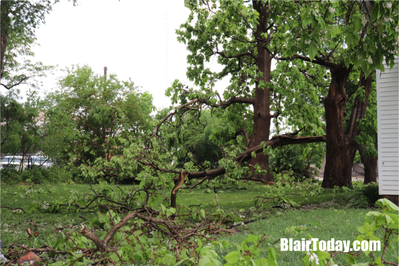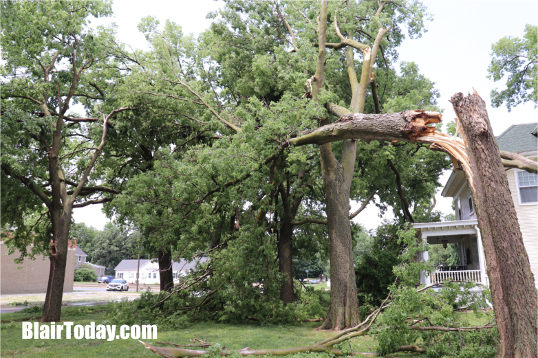 Today’s storm was not the equal to the monster that hit Blair in 2014. But, Blair received significant damage today as some residents I spoke with felt we had “80 mph” winds. One person told me there was “rotation” and the winds were not “straight line.”